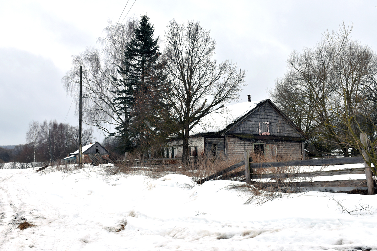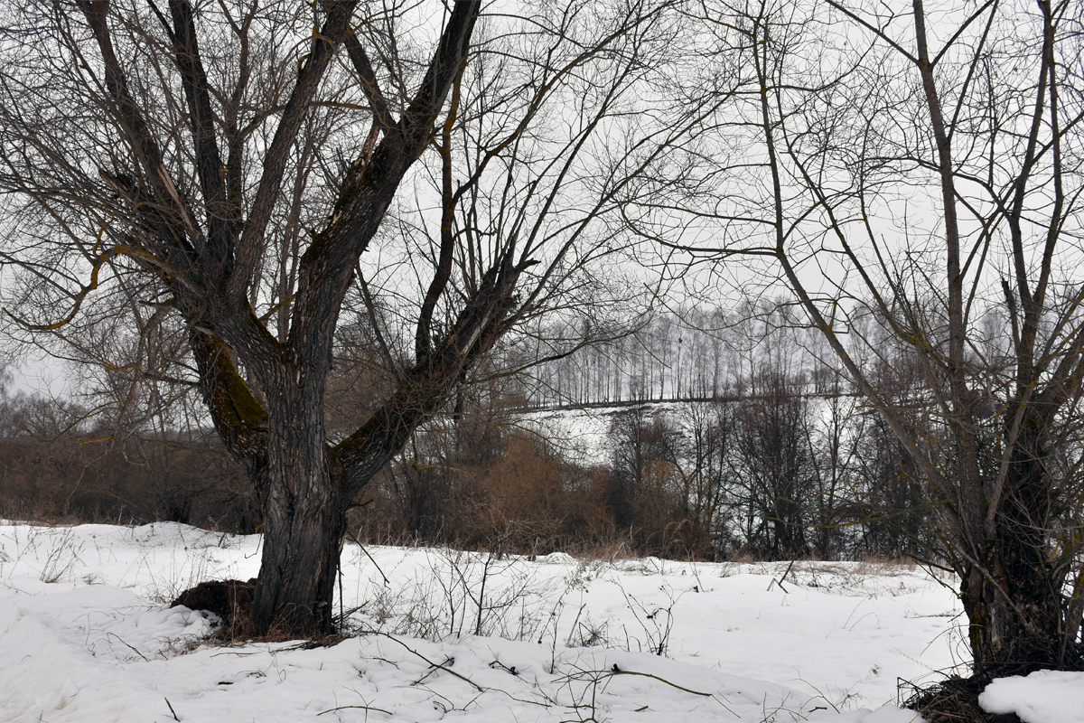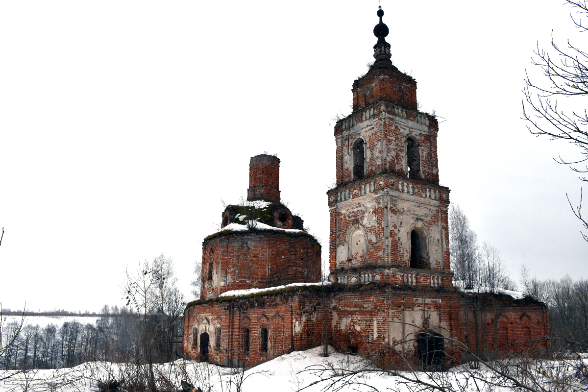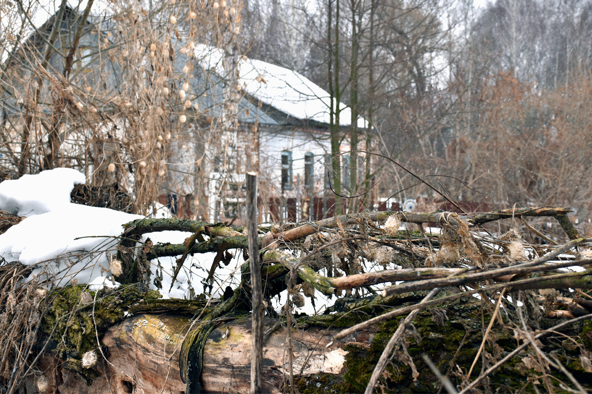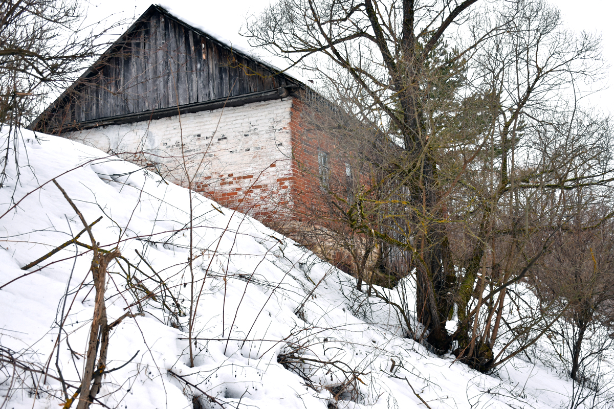 А какая вокруг красота, хоть и картинка чёрно-белая. Воздух такой чистый, что хочется дышать им глубже, чем обычно. Пейзажи потрясающие! Отвесные берега Сельны и Вязовенки напоминают горные склоны. А сами речки быстрые и шумные, как в горах. Среди зарослей на берегах местами торчат из снега остовы домов, напоминая о былом. И из любой части села видна большая и красивая церковь «Всех скорбящих радости» 1770-х годов постройки. По её размерам и архитектуре понятно, что «Золотой век» Екатерины II был таковым и для Вязовны.