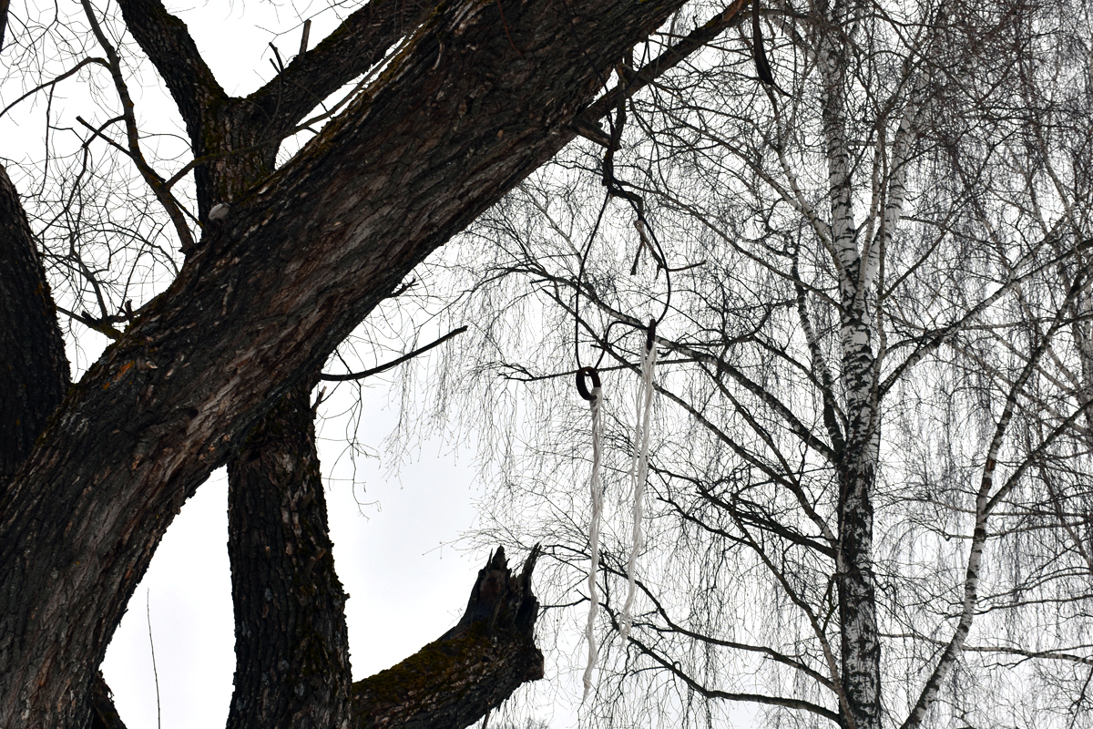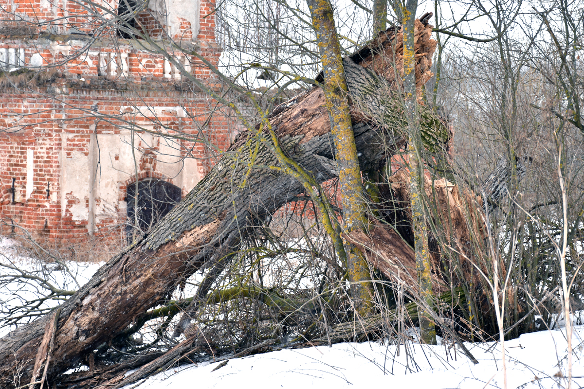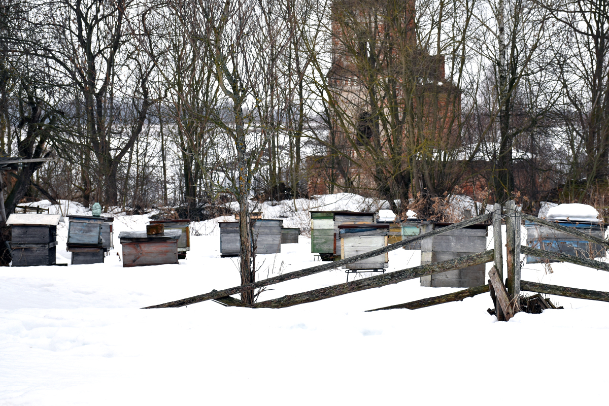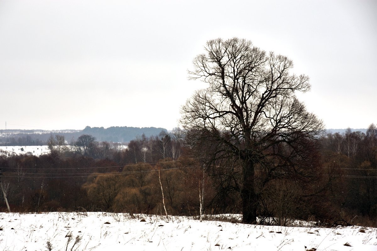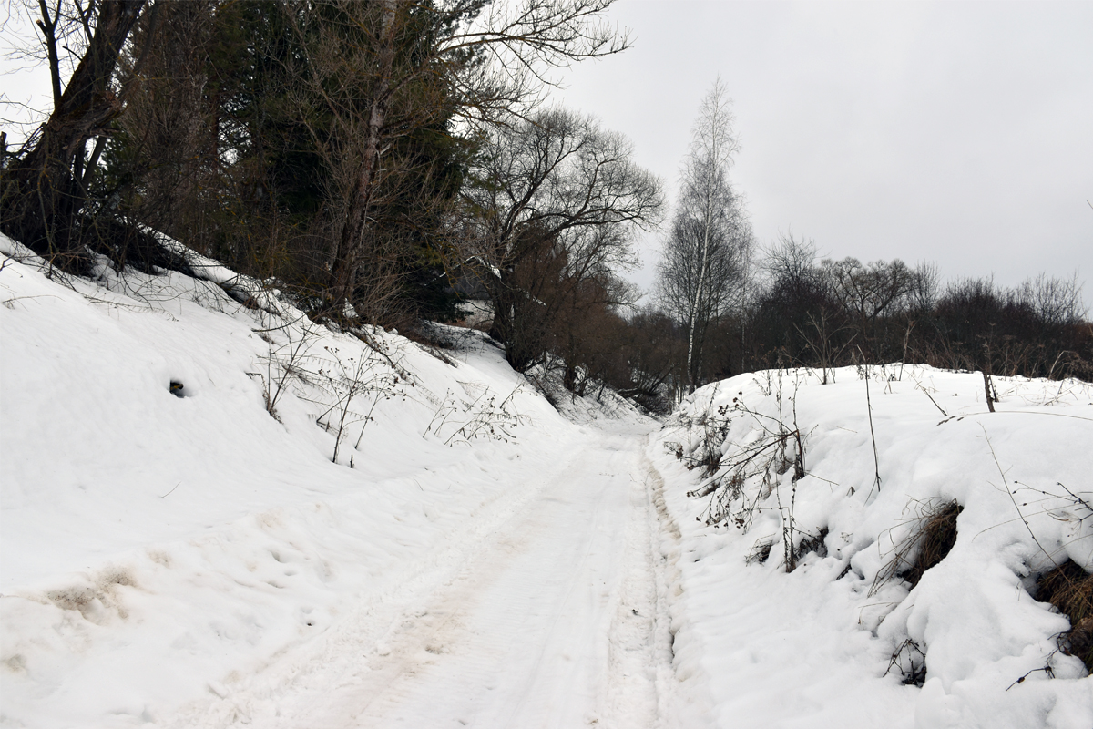 А какая вокруг красота, хоть и картинка чёрно-белая. Воздух такой чистый, что хочется дышать им глубже, чем обычно. Пейзажи потрясающие! Отвесные берега Сельны и Вязовенки напоминают горные склоны. А сами речки быстрые и шумные, как в горах. Среди зарослей на берегах местами торчат из снега остовы домов, напоминая о былом. И из любой части села видна большая и красивая церковь «Всех скорбящих радости» 1770-х годов постройки. По её размерам и архитектуре понятно, что «Золотой век» Екатерины II был таковым и для Вязовны.