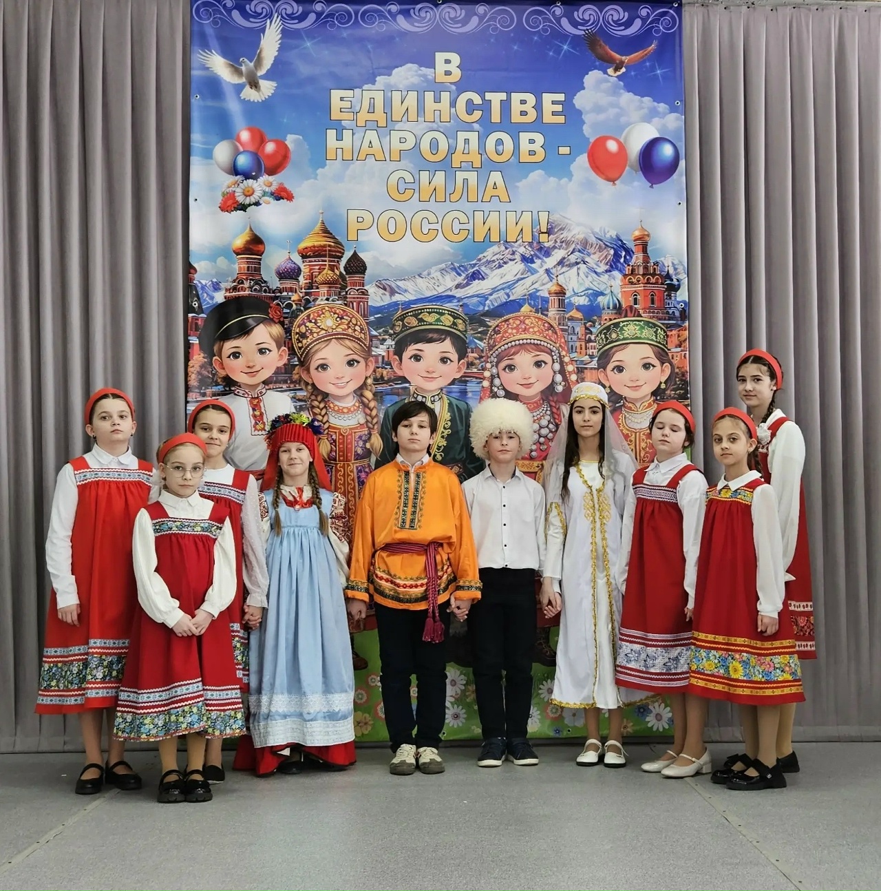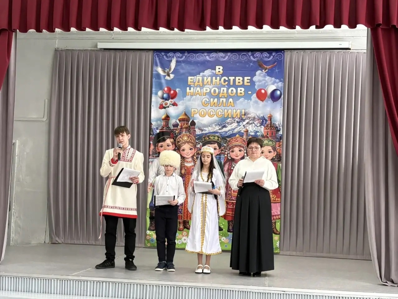 Директор школы Ирина Соколова в своем вступительном слове подчеркнул, что на протяжении всей истории нашего государства единство его народов являлось фундаментом для достижений, благосостояния и успехов. Он отметил, что наша сплоченность является залогом нашей непобедимости, и именно совместными усилиями мы строим великую страну и могущественную державу.