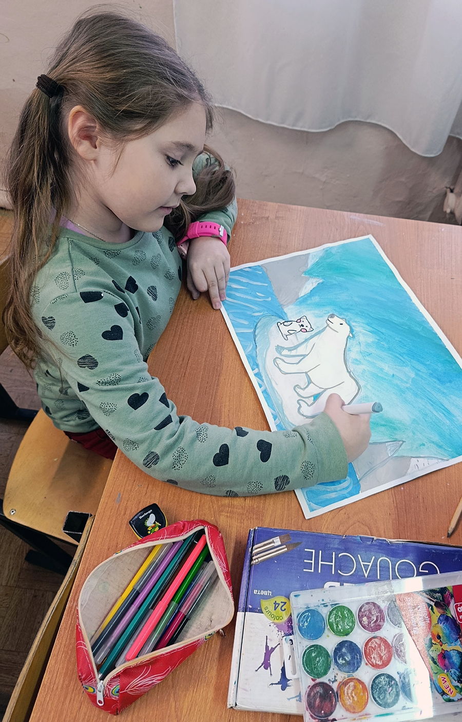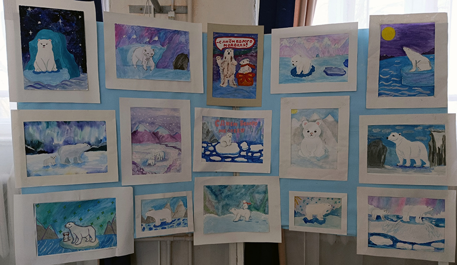 Юные участники с энтузиазмом создавали рисунки белого медведя. В школьном зале открылась выставка детских творческих работ, где победители и участники конкурса были награждены дипломами и призами.