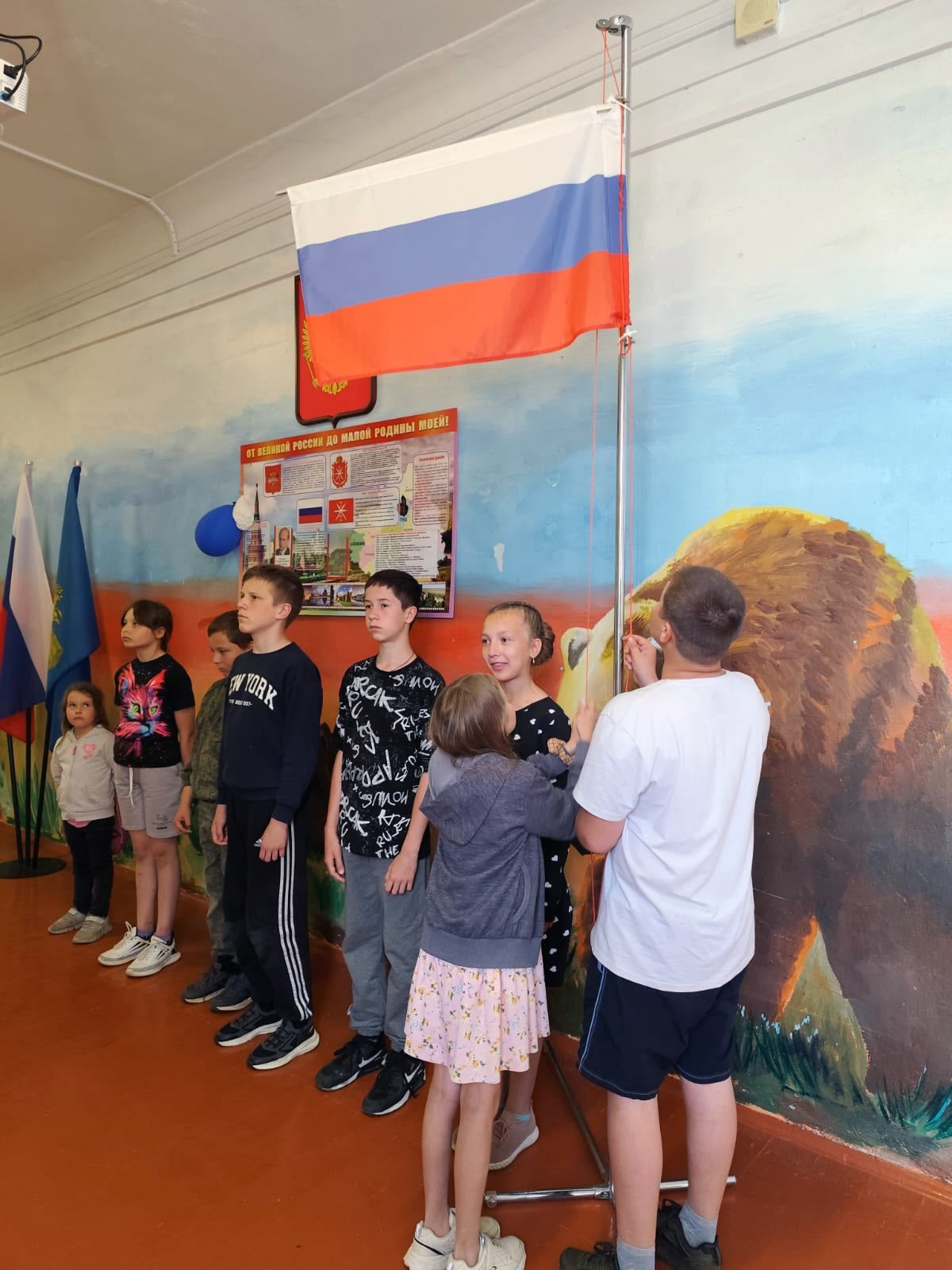Очередной день в пришкольном лагере Будоговищенской школы начался торжественно — с церемонии поднятия государственного флага Российской Федерации.