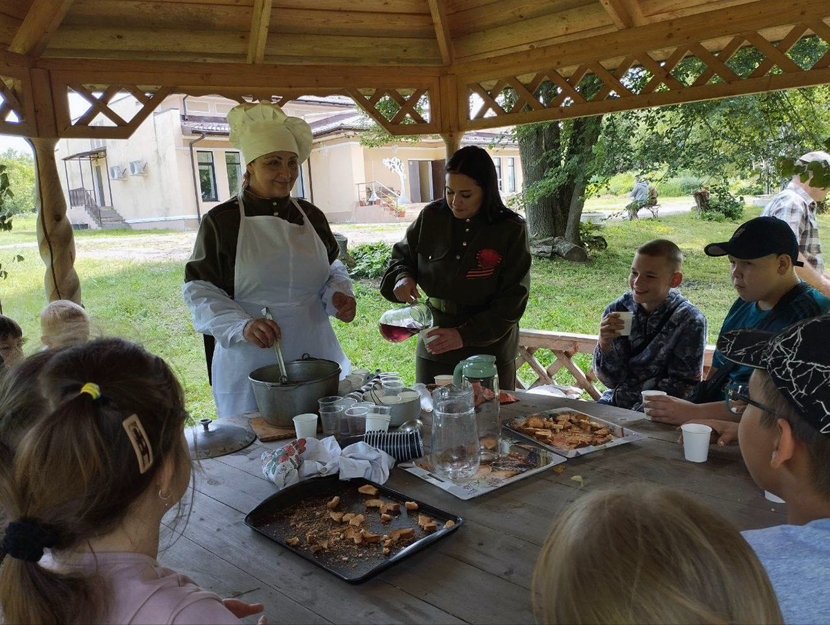 В мероприятии приняли участие ребята из пришкольных лагерей Белёвского района. Специалисты районного центра развития культуры и туризма погрузили участников в атмосферу военного госпиталя с выступлением артистов фронтовых бригад, познакомили с военной формой разных эпох, вспомнили песни военных лет.