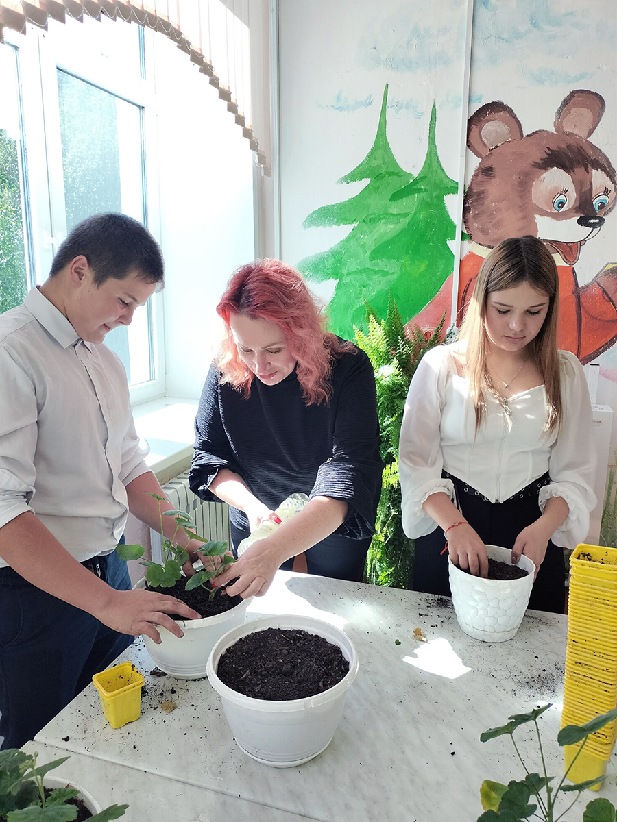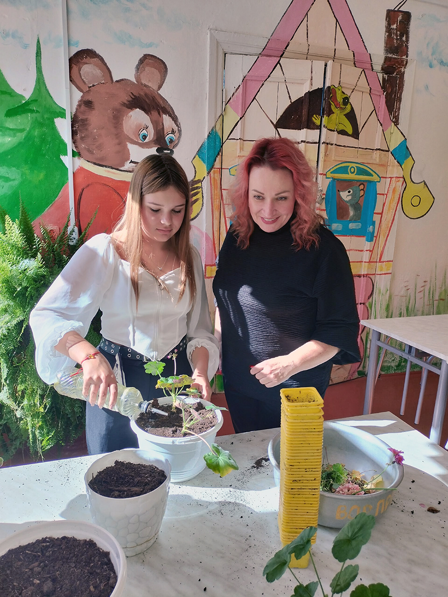 А ученики 8 класса решили посвятить этот день уходу за комнатными растениями, а именно, пересадке герани. В солнечный день, вооружившись горшочками с землей и геранями, ребята и педагоги с радостью помогали друг другу. Они делились опытом и с улыбками на лицах занимались садоводством. Каждый цветок получил необходимую заботу, и вскоре наши зеленые уголки преобразились. Герани, словно благодарные за новую жизнь, стали радовать нас своим пышным цветением.
