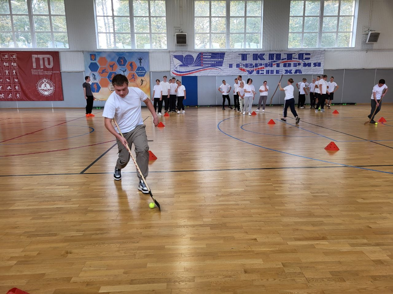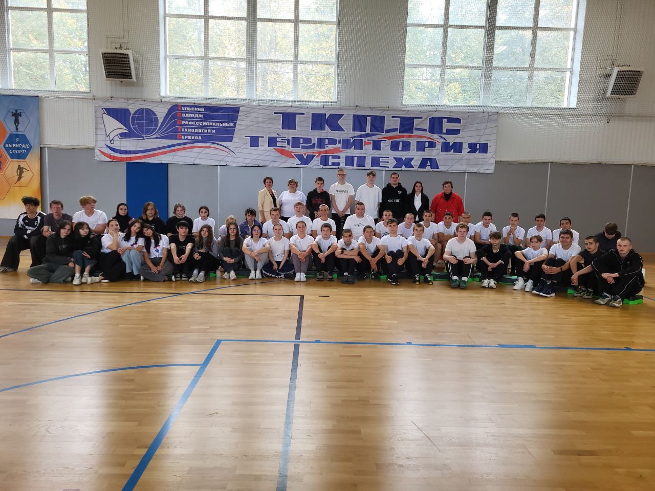 Первокурсники, объединившись с кураторами своих групп, приняли участие в весёлой спортивной эстафете. В финале мероприятия они соревновались в перетягивании каната. Так первокурсники стали полноценными членами большой и дружной семьи нашего колледжа, став частью единого целого.
