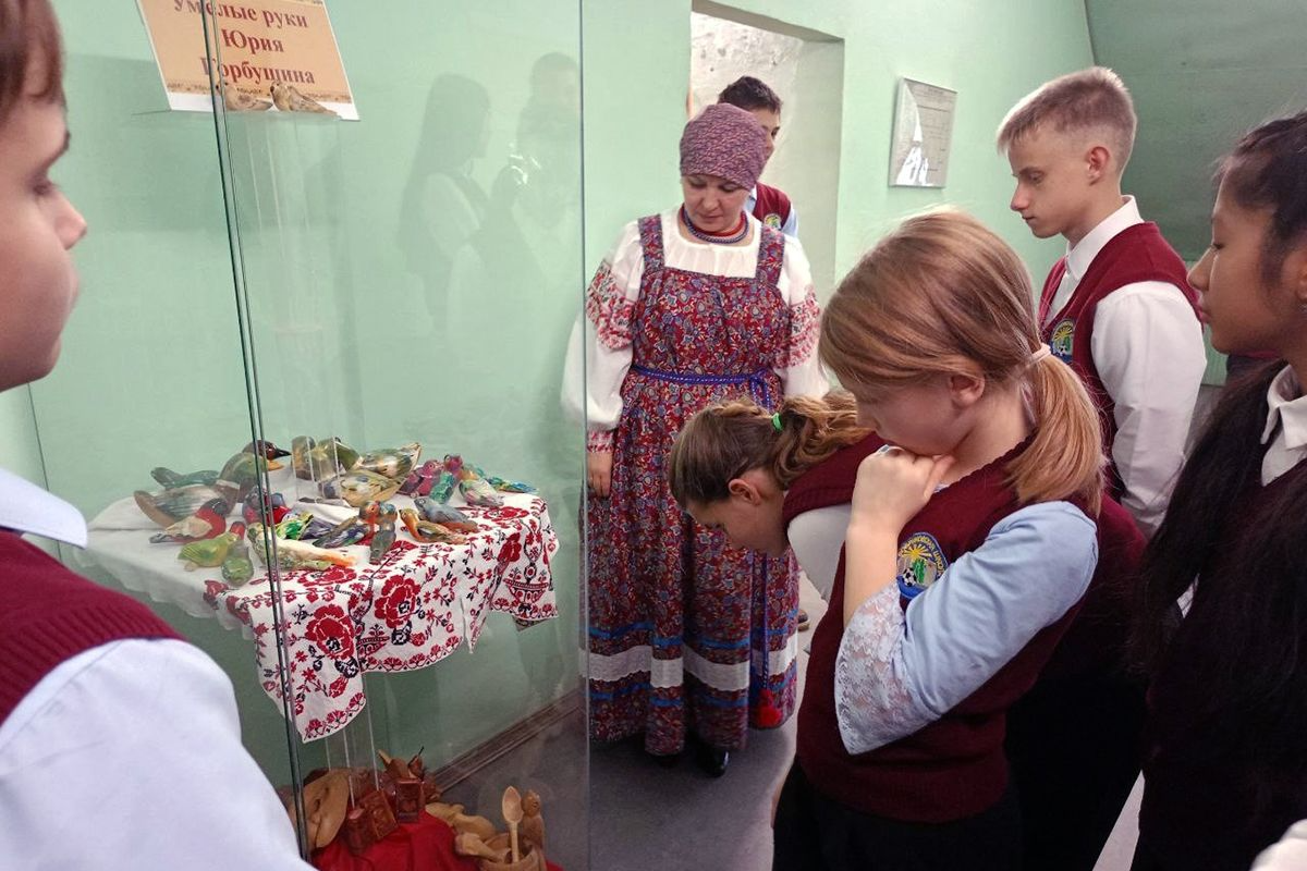 В Белёвской центральной библиотеке имени В.А. Жуковского для учеников Бобриковской школы состоялась организованная сотрудниками сектора краеведения презентация выставки-экспозиции «Умелые руки Юрия Горбушина»