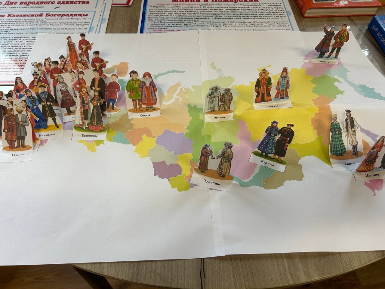 Библиотекарь рассказала участникам о Смутном времени, о подвигах Минина и Пожарского и Ивана Сусанина. Гости также узнали о праздновании в честь Казанской иконы Божией Матери и о культурном многообразии нашей страны, её народах и традициях.