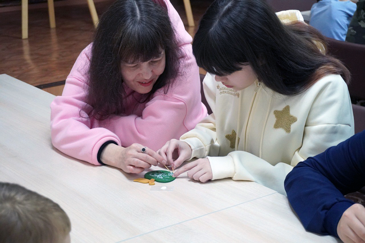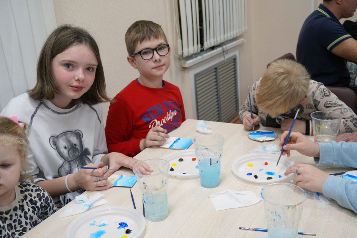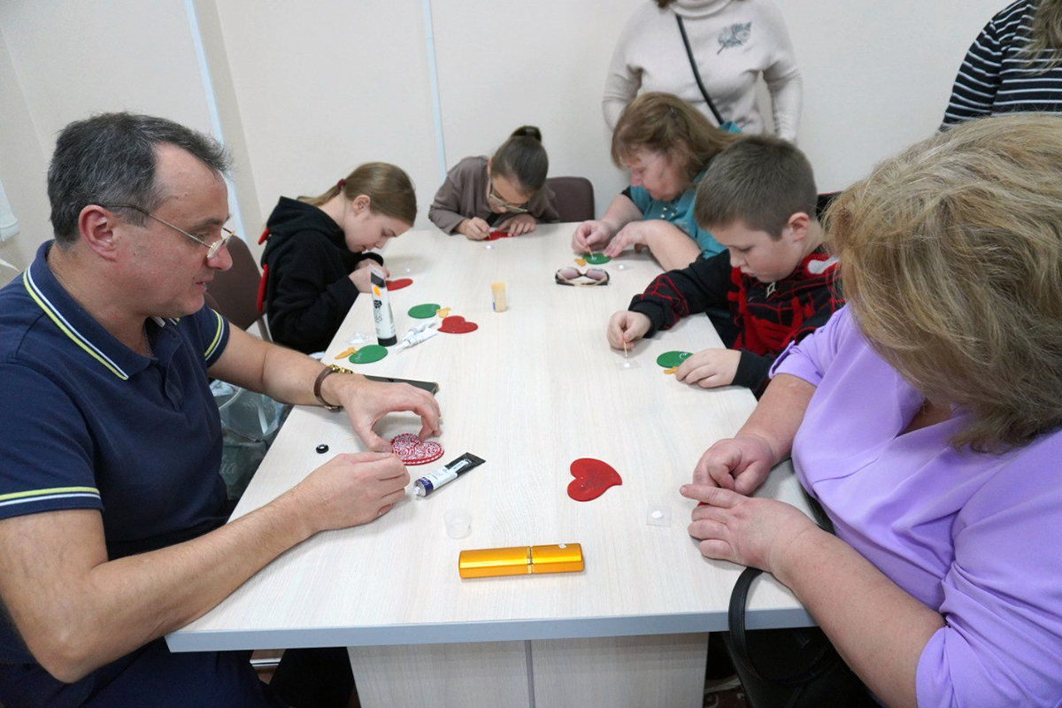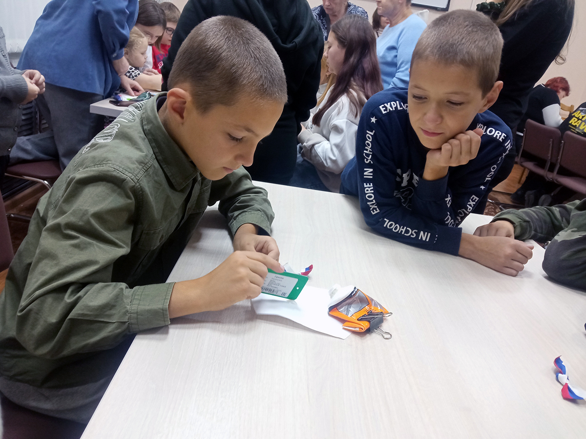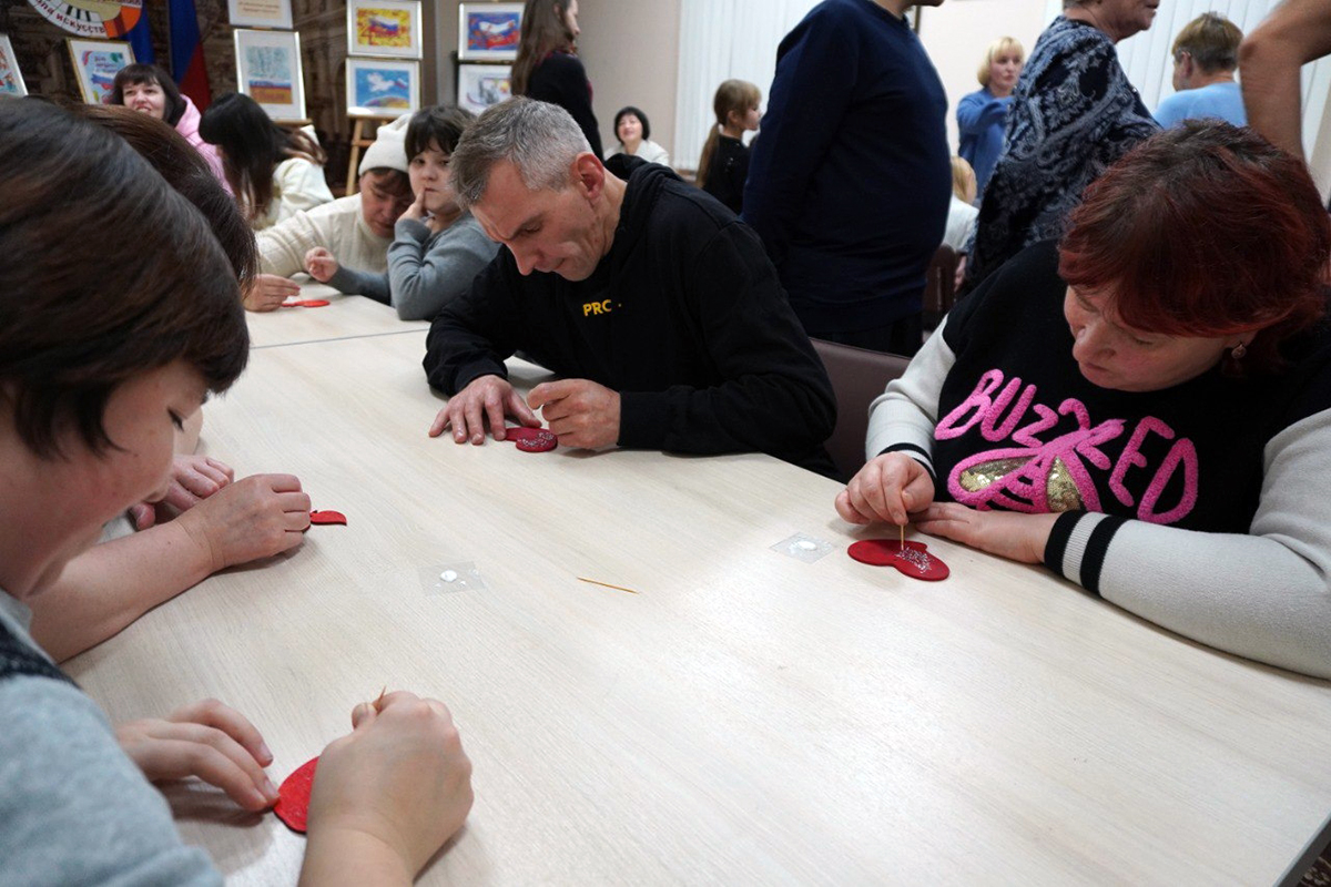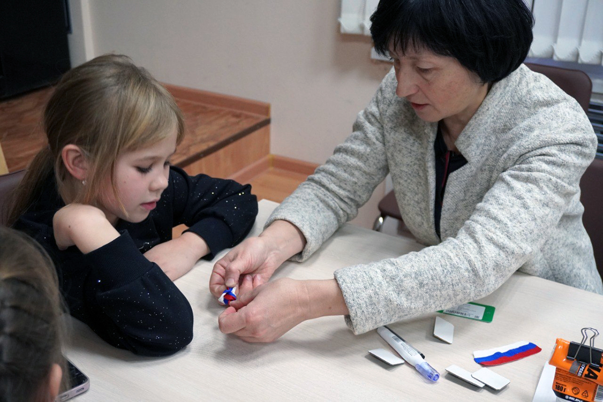 Занятия по "Точечная роспись" провёл Олег Юрьевич Хорьков, создание композиции "Мы едины" на холсте Ольга Николаевна Курашкина, а также гости своими руками создали значок "Триколор" с российской символикой.
