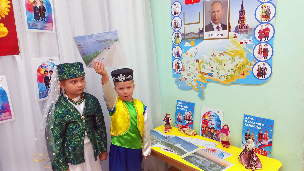 День народного единства в белёвском детском саду "Ромашка" стал настоящим праздником дружбы. В гости пришли дети в ярких национальных костюмах, представляя разные республики России.