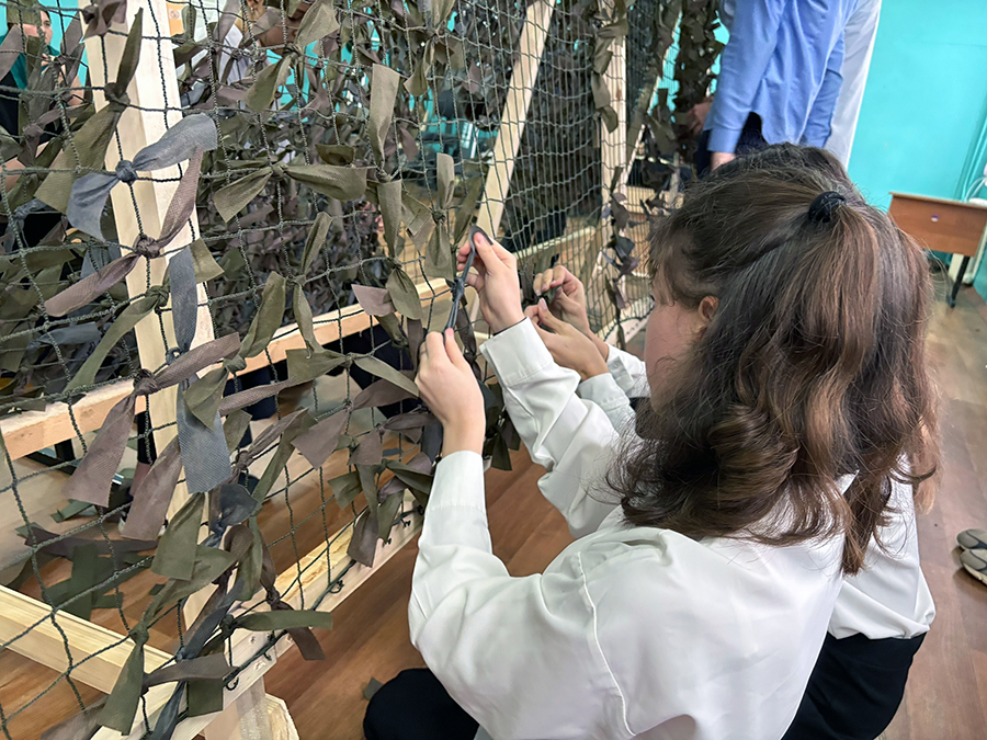 Так, ученики седьмого класса проявили инициативу и приняли активное участие в создании специального каркаса, который необходим для изготовления маскировочных сетей. Уже через три дня общими усилиями всего школьного коллектива была завершена первая масксеть, которая будет помогать защите наших героев на передовой.