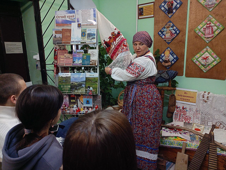 Участники мероприятия отвечали на вопросы и выполняли задания, связанные с историей древнего Белёва и его известными брендами: кружевом, пастилой и архитектурными памятниками, такими как монастыри. Они также отгадывали предметы русского быта, представленные на выставке «Из бабушкиного сундука».