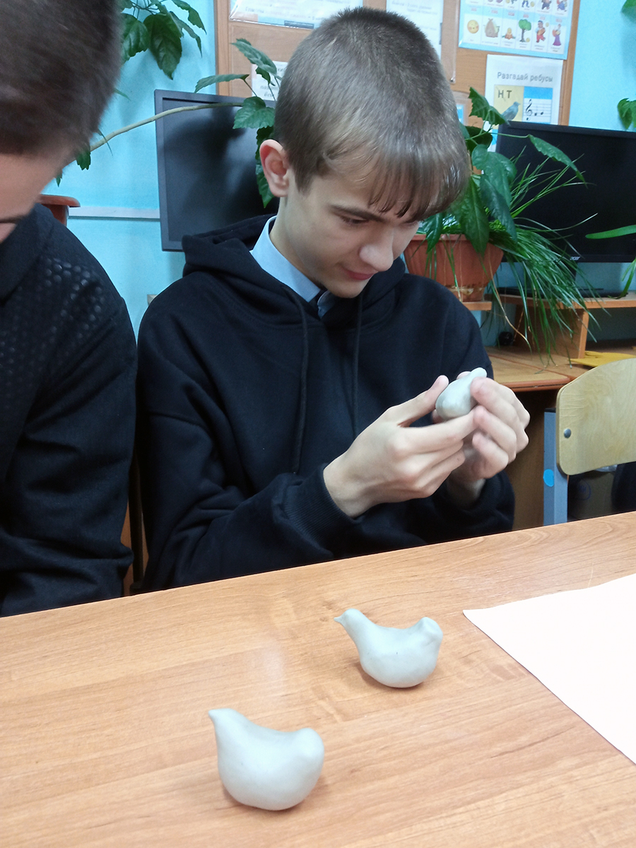 Под руководством преподавателя ребята сделали утиц, самостоятельно изготовили свистульку и узнали различия между Филимоновской и Дымковской росписью.