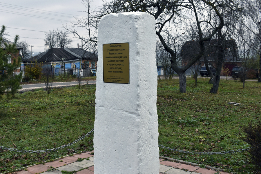 Камень для него был найден в овраге под уже недействующим казачьим кладбищем около села Семьюново и оттуда доставлен на место. А 2020 год – год 500-летия Большой Засечной черты и Тульского кремля показал - то решение было правильным. Сегодня этот памятник казакам в Белёве является единственным на всём пространстве Большой Засечной черты.