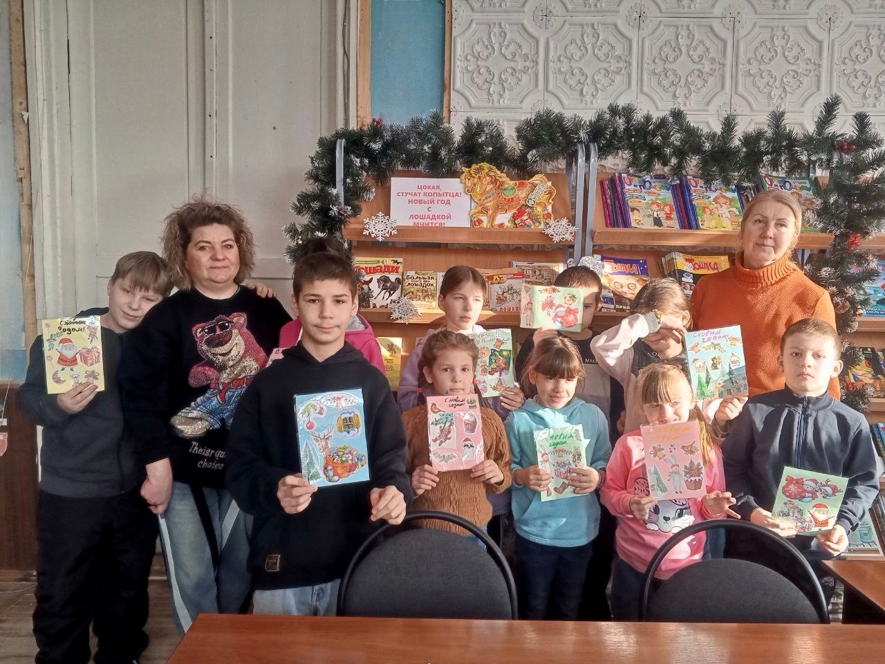 В конце занятия ребята с гордостью демонстрировали свои шедевры. Эти открытки, сделанные с душой и фантазией, станут самым дорогим подарком для близких в новогодние праздники, храня в себе частичку библиотечного волшебства и детского тепла.