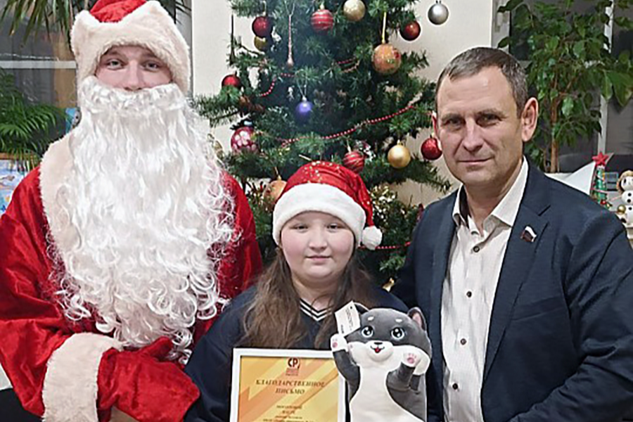 Депутат Тульской областной Думы, руководитель фракции «Справедливая Россия» Сергей Гребенщиков поздравил с новогодними праздниками школьницу Зареченского Центра образования №12 Настю Мосолову, которая активно участвует в работе волонтерского объединения «Тульская самоварочка».